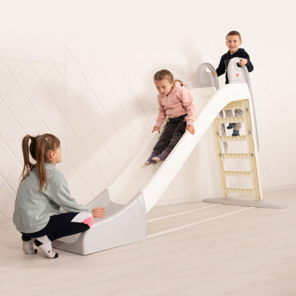 Гірка-спуск. Вона включає платформу, куди дитина піднімається, і поверхня з нахилом, по якій дитина з'їжджає вниз. Для додаткової безпеки зверху є поручні з боків. Залежно від вікових обмежень розміри та кут нахилу можуть бути різними;
