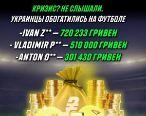 У Parimatch повідомили про великі виплати гравцям, які вгадали результат матчу Прем'єр-ліги "Шахтар" - "Динамо". Матч став найгучнішою спортивною подією в Україні після карантину і очікувано привернув увагу уболівальників. А для трьох з них гра виявилася особливо вдалою. Щасливчики з різних міст виграли шестизначні суми: IVAN Z** - 720 233 грн, VLADIMIR P** - 510 000 грн і ANTON O** відвідувань - 301 430 грн.