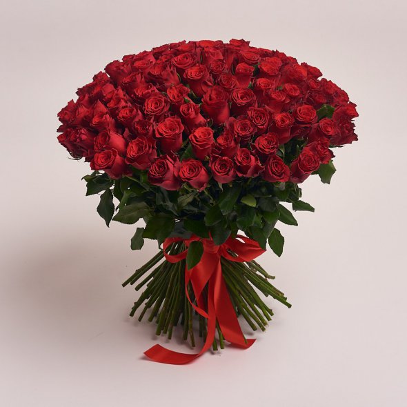Букет із 101 троянди – це воістину чарівне видовище. Величезний достаток ніжних квітів створює приголомшливе уявлення кольору та аромату, яке обов'язково справить враження на будь-кого, хто його побачить. Купити 101 троянду - відмінний вибір, якщо ви хочете зробити грандіозний жест або просто показати комусь особливому, наскільки ви дбаєте про нього.
