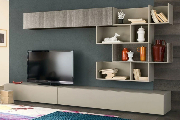 Вони дозволяють створювати композиції будь-якої форми та розміру, адаптуючись до планування кімнати. Ви можете вибрати будь-який набір меблів (тумба під телевізор, сервант, комод, навісні полиці, пенал) і розташувати його в довільному порядку.
