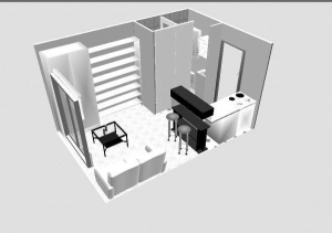 — Несучі стіни у нас лише по периметру. Тому решту будемо вивалювати. Лише санвузол відокремимо гіпсокартонною перегородкою із розсувними дверима. Бо зараз не можливо відчинити двері туалету, якщо відчинені двері спальні. Кухню розмістимо у коридорі. Поставимо невеликий холодильник, поряд такої ж висоти пральну машинку, над ними прикріпимо столешню. Зверху — електроплитку. На стіні висітимуть кухонні шафки. Ніякої перегородки між кухнею і спальнею не робитимемо. Вирішили ставити барну стійку. На ній будемо їсти, а заодно візуально відокремимо кімнату і зекономимо площу.
