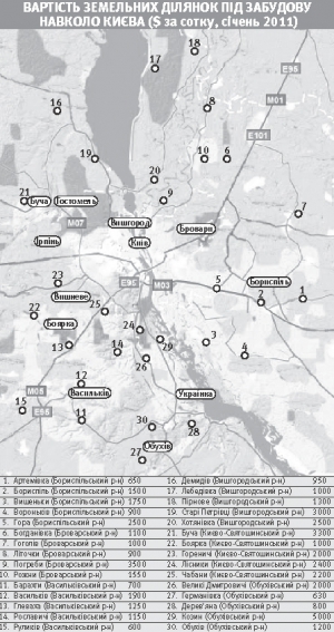 — Ціни тішать. У Кончі-Заспі й Козині два роки тому сотка під забудову коштувала 40–50 тисяч доларів. Зараз виставляють по 5–6 тисяч. Минулого літа у селах Васильківського району сотку цінили в 2–3 тисячі доларів. Учора ми їздили з рієлторкою в Гвоздів, за 15 кілометрів від Києва. Дивилися кілька ділянок під забудову. Світло й газ треба тягнути метрів 100. Дуже гарний краєвид, на пагорбі. Сусіди прілічні, як кажуть. Вже понаставляли двоповерхові хати. Правда, на пагорбі вода глибоко. Хазяїн скинув ціну до 1200 доларів за сотку. А було по 5 тисяч. Два роки не можуть знайти покупця.