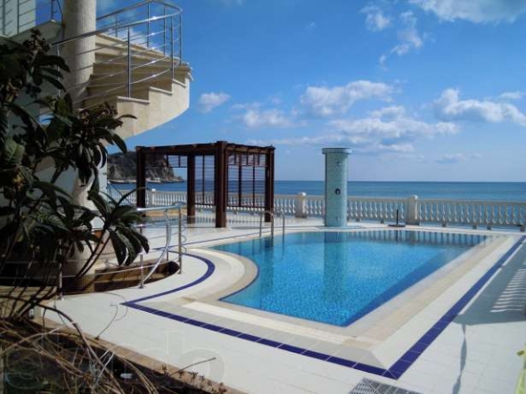 Ця триповерхова вілла розрахована на проживання до десяти чоловік. До моря 30 метрів. У будинку: кафе, бар, ресторан, кухня, басейн, ліфт, п'ять спалень із балконами і видом на море і гори.