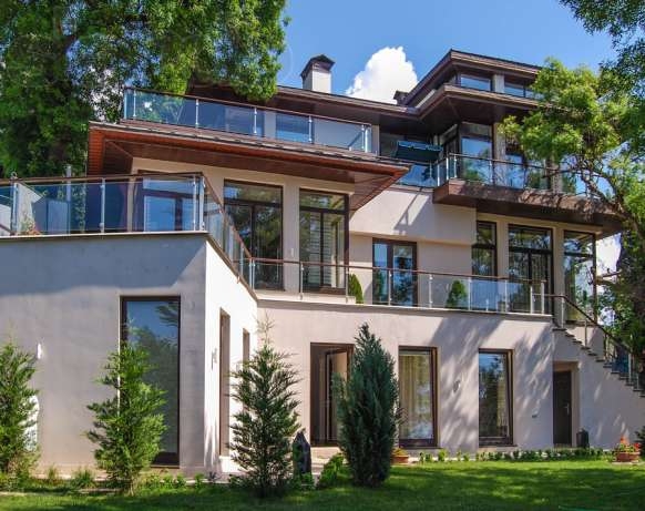 Суперсучасна вілла на березі моря в Алупці. Межує з парком Воронцовського палацу. Багато видових терас, гарний зелений двір із віковими кедрами і кипарисами. Загальна площа будинку 600 м. кв. У ньому п'ять спалень, кабінет, простора вітальня з каміном, їдальня, кухня, окремі приміщення для персоналу. Ділянка 30 соток. До закритого санаторного пляжу 300 кроків по доріжці (пропуски входять у вартість), резиденція знаходиться за 105 метрів від берега моря.