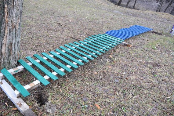 На дитячому майданчику в районі Зарічки перевернули павільйон, повідривали дошки від парканчика. Зламали стіл і лавки. Секції паркану висмикнули із землі та розкидали навколо. З однієї зробили імпровізовану драбину, яку приставили до даху громадського туалету.