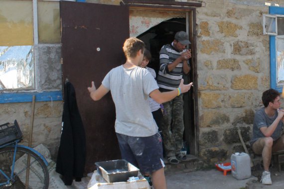 "Завдання волонтерів БУР не лише приїхати і зробити все самостійно, а зробити це спільними зусиллями із родиною. БУР дає поштовх, такий собі траплін для подальших змін. Для прикладу, сім'я ромів Савицьких із Зачепилівки погукала на ремонт своїх родичів. Всі гуртом замінили очеретяну стріху, що протікала", - сказав Едуард Коношенко, координатор будівельних робіт табору БУР у Нових Санжарах.