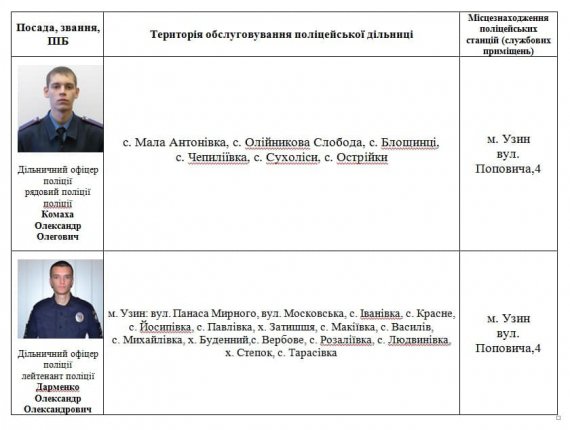 26 поліцейських обслуговують місто й села. Також м. Узин та Узинський район.