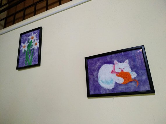 За словами бізнесмена, діти залюбки взялися до нової творчості. Більшість робіт прикрашають навчальні класи. Фабриці теж подарували дві картини з ниток. Утім, не лише картини з ниток навчилися створювати діти.