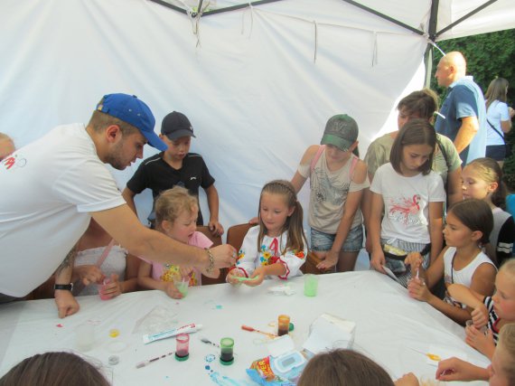 – Це мій найкращий день, – каже 9-річний хлопчик у зеленій футболці. Називається Владиславом. – Он уже сохне мій глечик. Я його сам зліпив. А зараз після тієї дівчинки в рожевій майці буду робити лизуна.