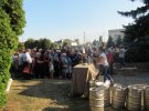 За пригощанням черга розтягнулася до приміщення податкової. Дехто знімає натовп на телефон і коментує.