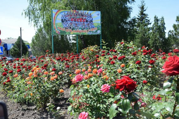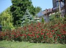 Зараз у центрі розквітли яскраві тагетиси, висаджують ароматні сульфінії. Але загалом у Нових Санжарах влітку панують троянди.