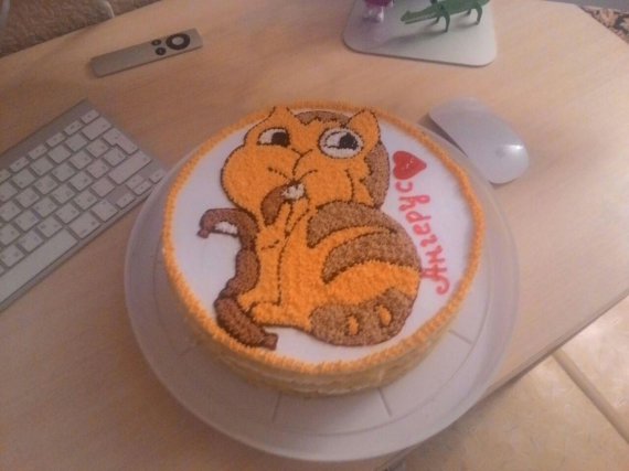 — Друзі подарували на день народження торт із намальованим котом. Замовляли заздалегідь в однієї нашої знайомої. Найприкольніше те, що кіт намальовий масляним кремом, і дуже талановито. Не уявляю, як так можна було — скопіювати картинку один в один, — розповідає мешканець Розсошенців Полтавського району Євген Буряковський, 29 років, — Торт важив 3 кіло, усередині мав безе, горіхи.