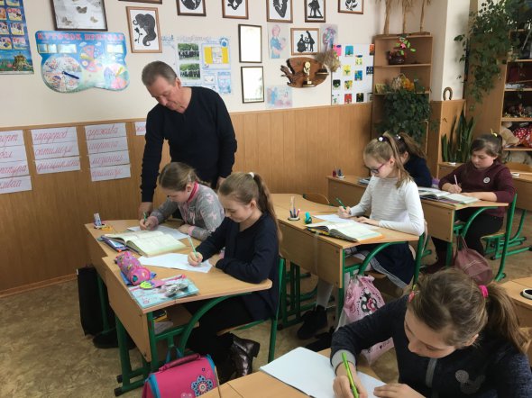 — Я не суворий, а вимогливий. Життя насправді не таке комфортне, — каже вчитель 4-А класу Василь Перин, 55 років. — Тому привчаю школярів до дисципліни, вчу поважати старших.