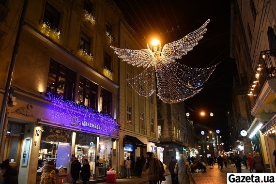 Напередодні новорічно-різдвяних свят центр Львова прикрасили святковою ілюмінацією, а вітрини магазинів і ресторанів - іграшками, гірляндами і ялинками.