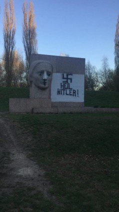 Невідомі вандали чорною фарбою замалювали очі скульптури, також на монументі з'явилися нацистські символи і написи "Хайль Гітлер" і "Смерть жидам". Полтавці власноруч оперативно зафарбували "послання" вандалів.