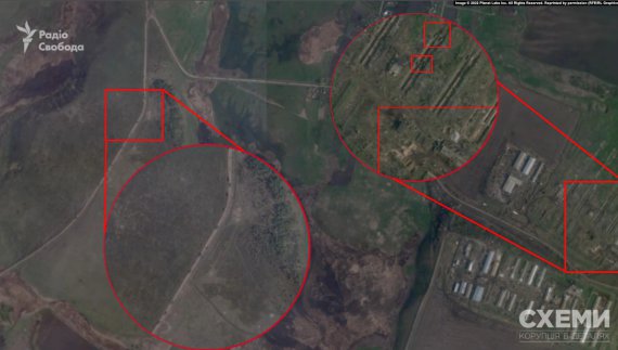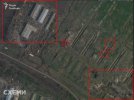 Також супутник зафіксував скупчення військової техніки Росії біля складських приміщень.