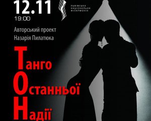 12 листопада у Львівській національній філармонії презентують авторський проект заслуженого артиста України Назарія Пилатюка спільно з Оркестром "Академія", Артуром Микиткою, Петром Довганем і Антоном Сопігою та диригентом Ігорем Пилатюком - "Танго Останньої Надії".