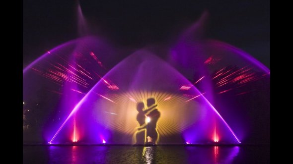 У вересні 2011 року на день міста його урочисто відкрили. Фонтаном можна помилуватися з квітня до кінця жовтня. У будні фонтани вмикають о 14:00, на вихідних – о 12:00. Щопівгодини відбувається коротке денне шоу з синхронізованою музикою. Денна програма не така ефектна, як вечірня. Використання лазерного проектора з екраном, що складається з водно-повітряної суміші, що розподілена по всій довжині фонтану дозволяє демонструвати на фонтан відео у форматі 3-D.