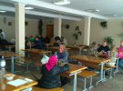 Із собою люди брали лише документи. Дехто сидить у халатах і домашніх тапках. Евакуйованих одразу почали годувати. Забезпечили водою, фруктами та солодким печивом. На ранок в їдальні залишилися близько 20 людей. Постійно їдуть волонтери, а місцеві забирають постраждалих до себе.