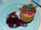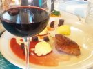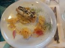Рибну страву – запечену камбалу, кухар презентував із поєднанням булгуру та ніжним вершковим соусом з креветок та йогурту. В составі булгуру є печений баклажан, помідори конкассе та кінза. Смакував разом з білим новозеландським вином.