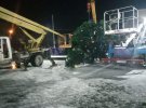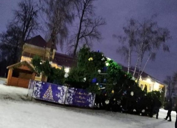У місті Дунаївці на Хмельниччині головна новорічна ялинка впала через сильні пориви вітру.