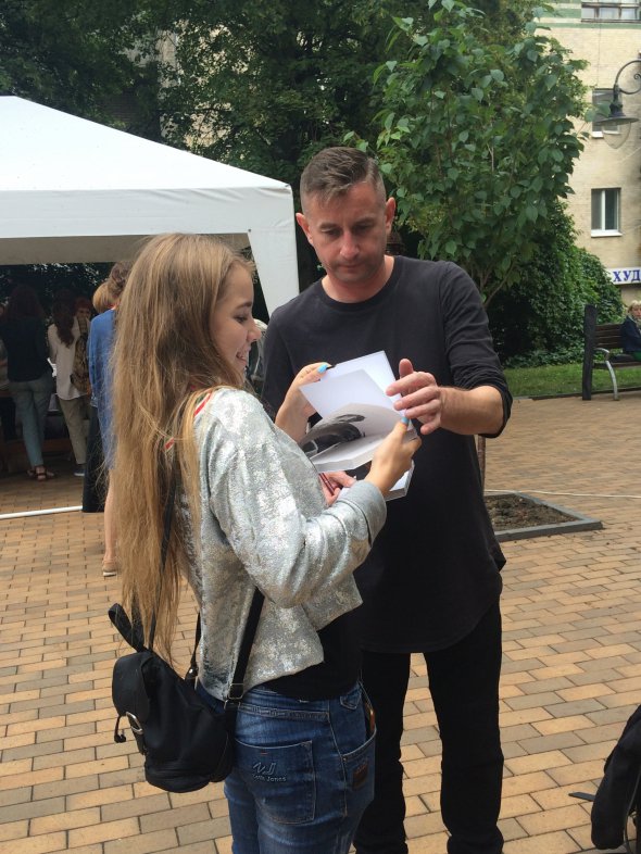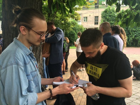 Біля письменника утворилася черга. Беземоційно Жадан фотографувався і давав автографи учасникам фестивалю.