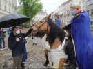 Розпочалося дійство тим, що до входу у львівську Ратушу на конях підійшли Король та Королева і подякували усім медикам за роботу.