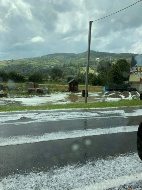 Негода прийшла на Прикарпаття після того, як оголосили штормове попередження. Найбільше граду випало у Яремче.