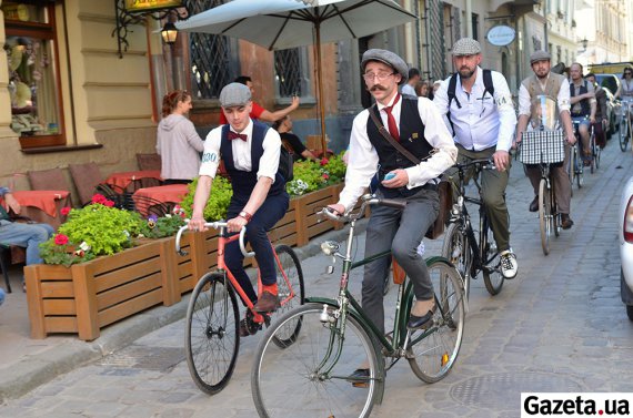 Четвертий велозаїзд "Батяри на роверах" зібрав десятки шанувальників львівської міської культури початку ХХ століття.