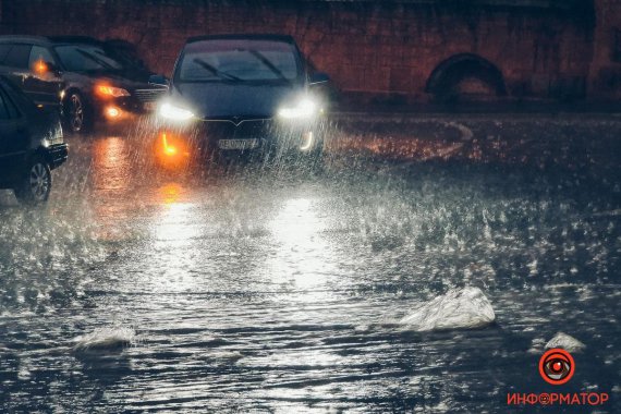 Вчора ввечері Дніпро знову накрила сильна злива з градом. Вулиці міста перетворилися на ріки.