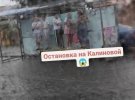 Деякі машини буквально йшли під воду. А на одній із зупинок на Лівому березі людям довелося залізти на лавку, аби сховатися від дощу.