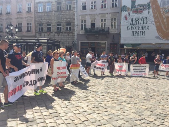 Під стінами Львівської міськради пройшов мітинг проти мера Андрія Садового. Представники організацій учасників АТО та ГО "Розвиток громади" вимагали вибачення від міського голови за його слова на віче 25 червня. Також говорили про відставку начальника управління комунальним майном Львівської міськради Інни Свистун, відсторонення її від посади на час розслідування розкрадань львівського майна.