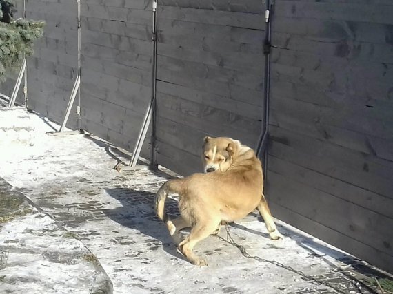 Люди обурені собаками, яких привезла кінологічна служба "Гепард". Тварин прив'язали до паркану.