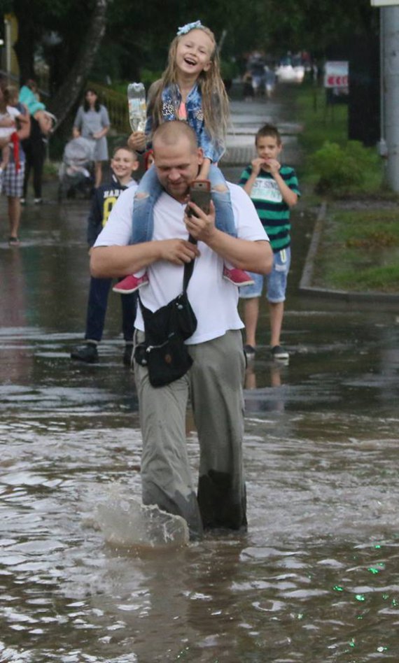 Люди йшли на крайнощі. Взуття тримали у руках. Дітей несли на плечах та брали на руки. А хтось змирився з дощем і просто перечікував.