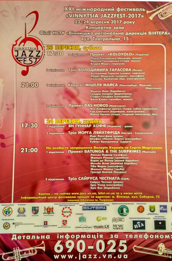 8 джазових колективів з 9-ти країн світу виступатимуть на 21-му Міжнародному фестивалі VINNYTSIA JAZZFEST у Вінниці 23 та 24 вересня.
