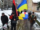 Близько двох десятків учасників акції принесли під консульство Росії українські та білоруські стяги, та зачитали свої вимоги.