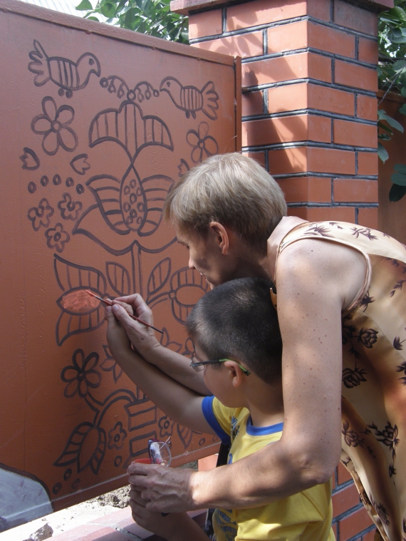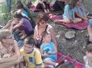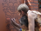 Після того як художники закінчили малювати візерунки, розмалювати їх дозволили дітям. Сім'ям з маленьким дітьми, видали ковдри. Вони вмощувались на траві. Майже всі приходили родинами.