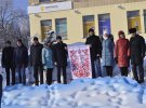 Більше 100 місцевих жителів взялися за руки. Тримають роздруковані папірці із зображенням єдиної України та український прапор.