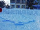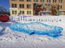 Згодом підходять до 6-метрової мапи із снігу. Фотографуються. Дехто робить селфі.