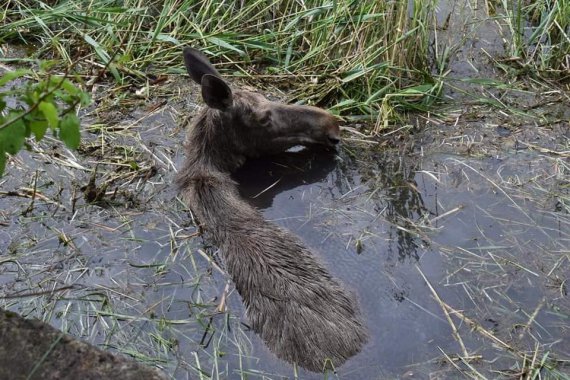 "Рятувальники спільно з мисливцями за допомогою бензопил розчистили від чагарників і гілля місце, щоб дістатися очисної споруди. За допомогою рятувальної мотузки витягнули лосицю до борта очисної споруди. Тварина далі самостійно змогла вибратися на суходіл", - додали в повідомленні.