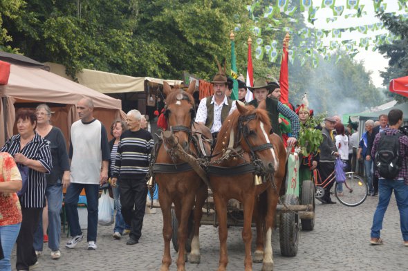 Ближче до вечора всі столики на ярмарку зайняті. Щоб купити вино, треба вистояти чергу. О 21:00 починається концерт угорської співачки Rúzsa Magdi. Балкони навколишніх будівель переповнені, як і сама центральна площа. Після концерту в небо летить феєрверк.