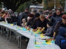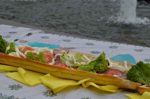 Однак порізати бутерброд організатори не встигли. Батони з яких він був зроблений – за хвилину розібрали зі столу в центрі міста місцеві мешканці.