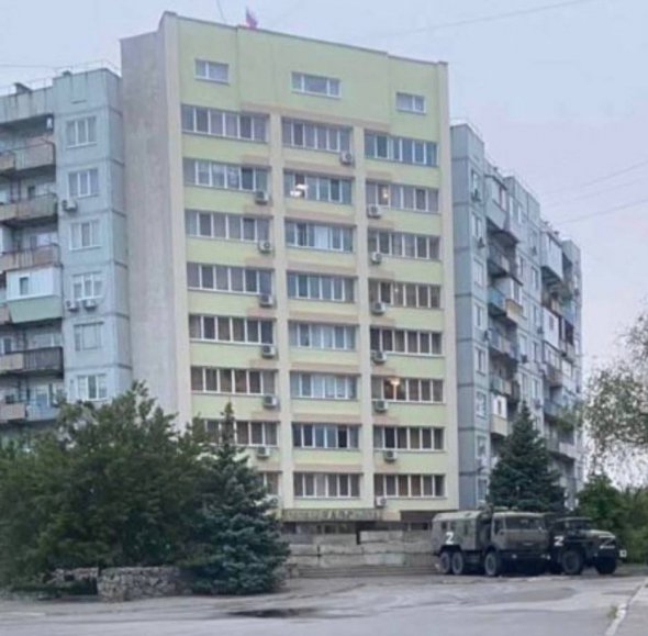 Кірпічов притягнув бетонні блоки до готелю ЗАЕС "Вставка", який також захоплений терористами. Також поруч розташована військова ворожа техніка.