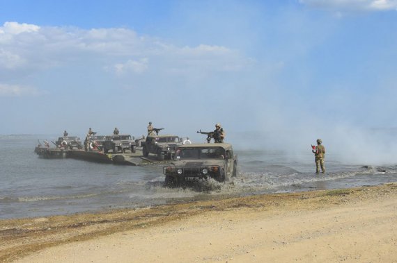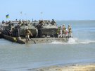 Також морпіхи у взаємодії з інженерними військами та ВПС ЗСУ подолали водну перешкоду – Білгород-Дністровський лиман – із застосуванням поромної переправи. За діями військ спостерігали начальник Генштабу Віктор Муженко і командувач ВМС ЗСУ Ігор Воронченко.