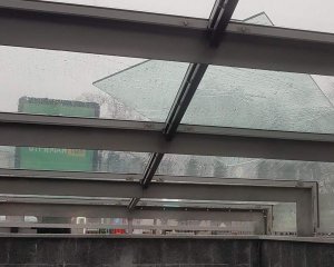 Люди, які ховалися під час граду в переході, розповідають, що гуркіт був дуже сильний. Порив вітру зірвав шматок скла. На щастя, ніхто не постраждав.
