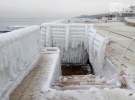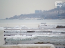 Поруч з морським портом у центрі міста по набережній пляжу "Ланжерон" гуляють одесити та фотографують крижані пейзажі замерзлого берега.