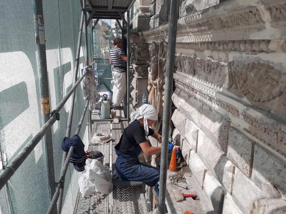 "У процесі роботи трапляються цікаві знахідки. Так отримує нові підтвердження уже незаперечний факт поліхромії фасаду, яка, вочевидь, існувала принаймні до кінця 18 ст.