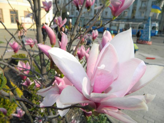 Нарешті у Вінниці настала справжня тепла весна. Вслід за сакурами у місті розцвіли магнолії.