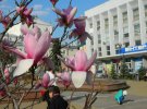 Спочатку дерева розпустилися на площі ім. В. Стуса. Білі магнолії закупили ще 20 років тому у київському Ботанічному саду. Біля них охоче фотографуються. Тепер наступила черга рожевих магнолій на Майдані Небесної Сотні. Їх теж привезли з Київщини.