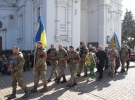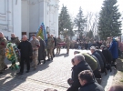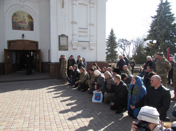 Люди провели бійця коридором пошани, стояли на колінах. Військові товариші попереду несли хрест та національний прапор.